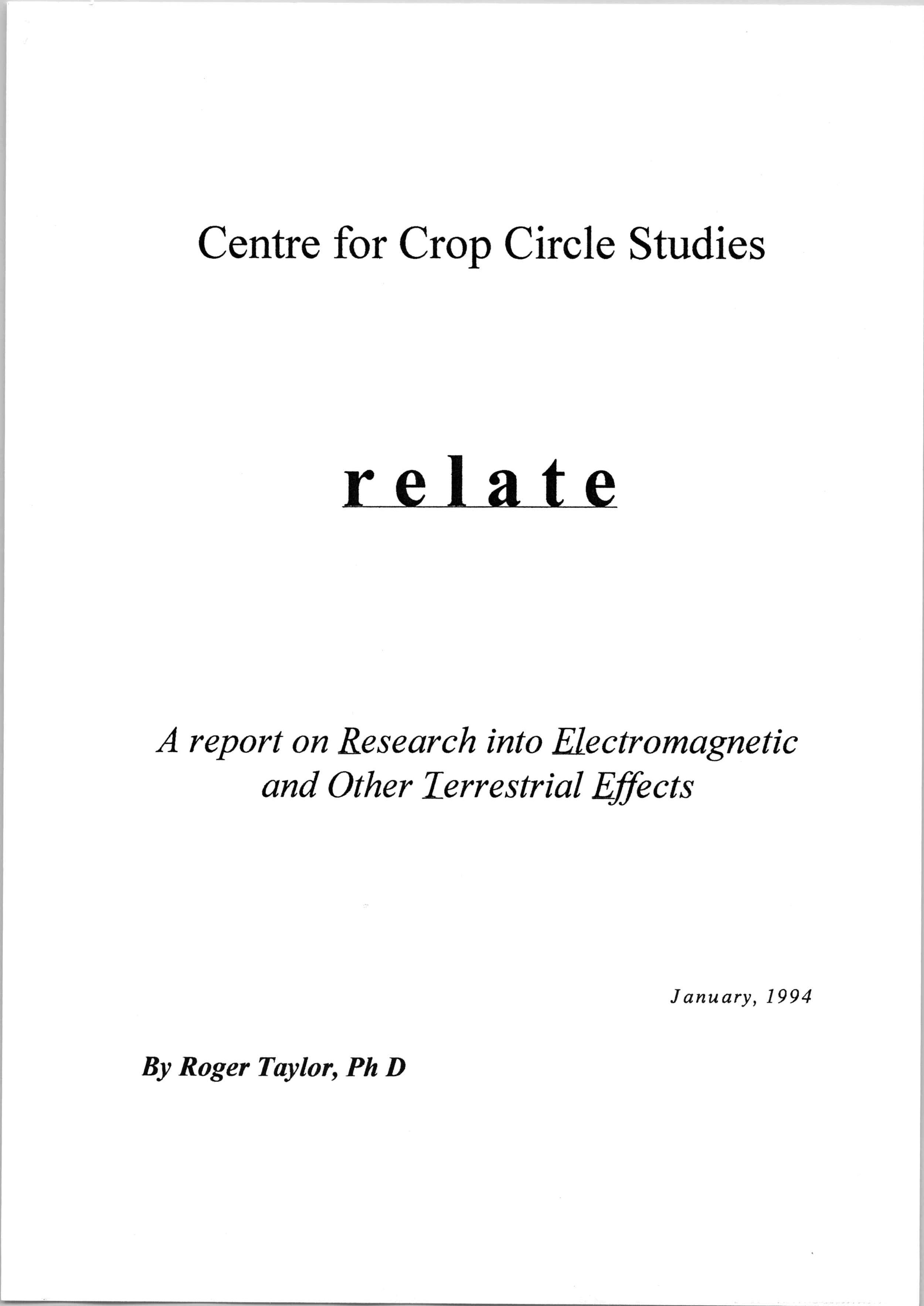 Project Relate: During the summer of 1993, Roger Taylor PhD fronted Project Relate on behalf of the Centre for Crop Circle Studies (CCCS). The report on Research into Electromagnetic and Other Terrestrial Effects was a follow on from Project Argus the previous year.