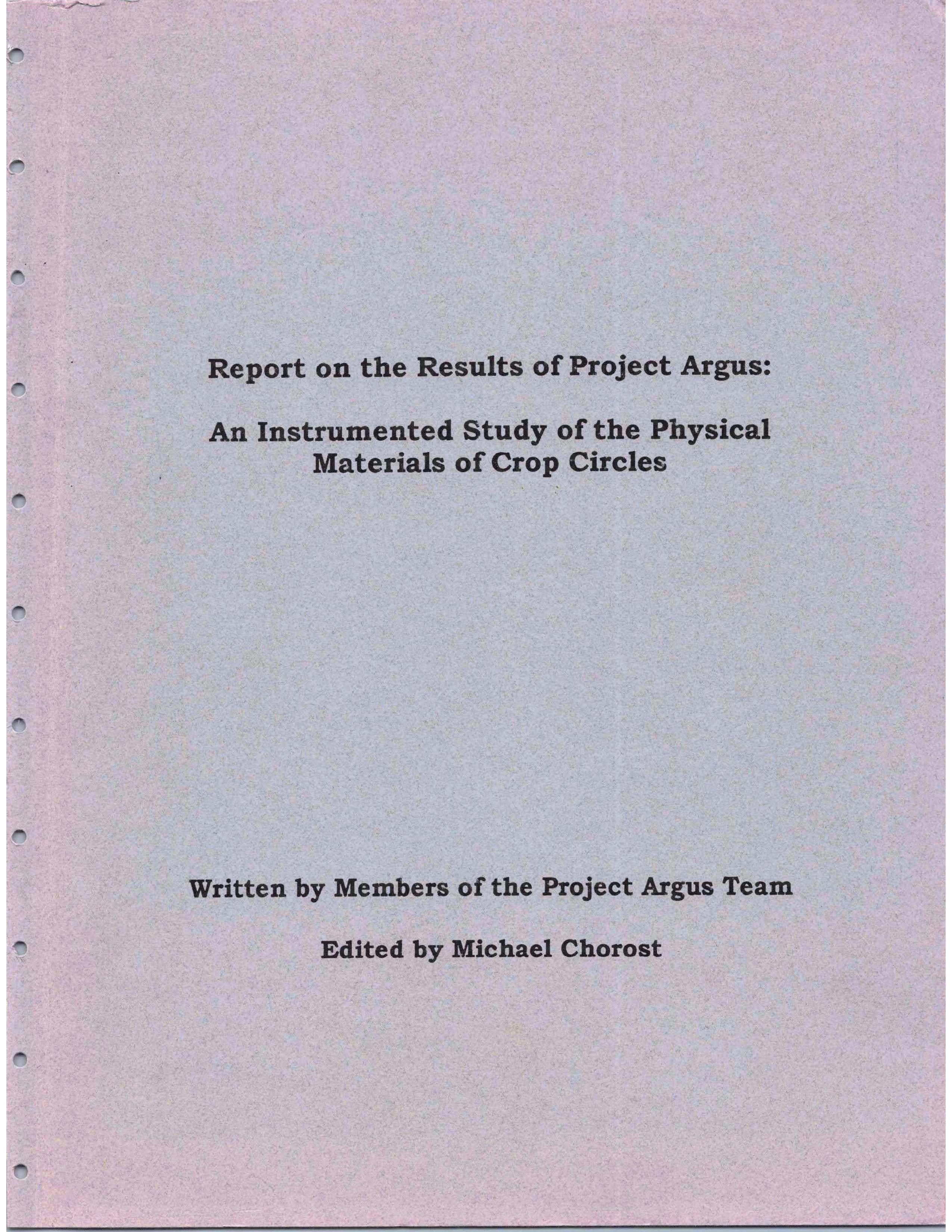Project Argus: From 9th July until 28th August 1992, the Centre for Crop Circle Studies (CCCS) and the United States research group North American Circle, jointly initiated Project Argus – an Instrumental Study of the Crop Circle Phenomena. International funding was obtained, together with generous support from private donors. The project was jointly steered by Michael Chorost, Director of North American Circle, and Montague Keen, convenor of CCCS’s Crop and Soil Effectes research panel.
