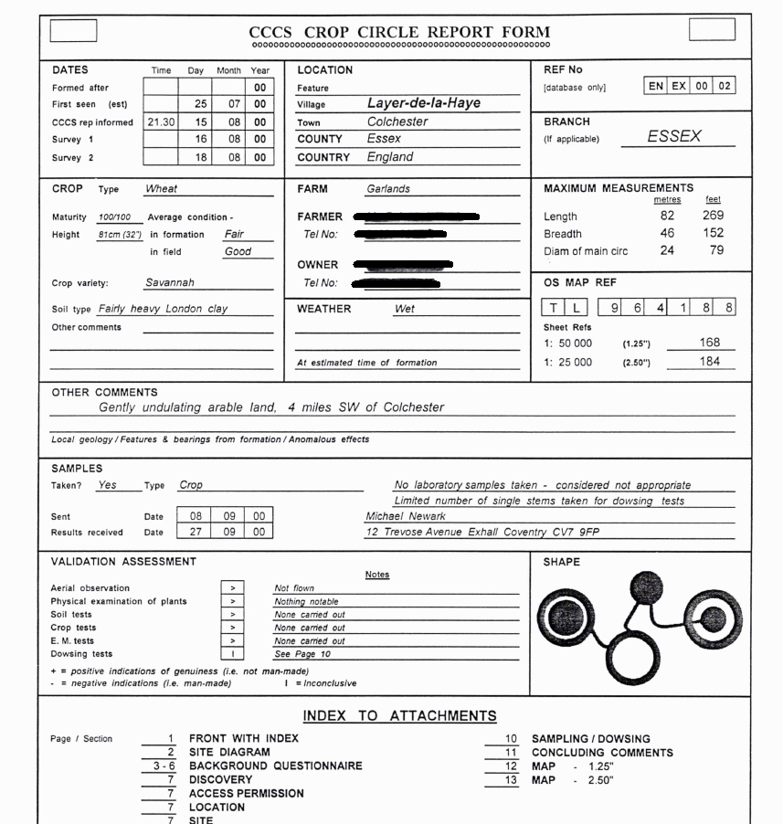 The Crop Circle Research Archive database currently holds nearly 17,000 pieces of information cross-referenced to over 2,850 crop formations from 1927 to the early 2000s. This information is broken down into categories such as: