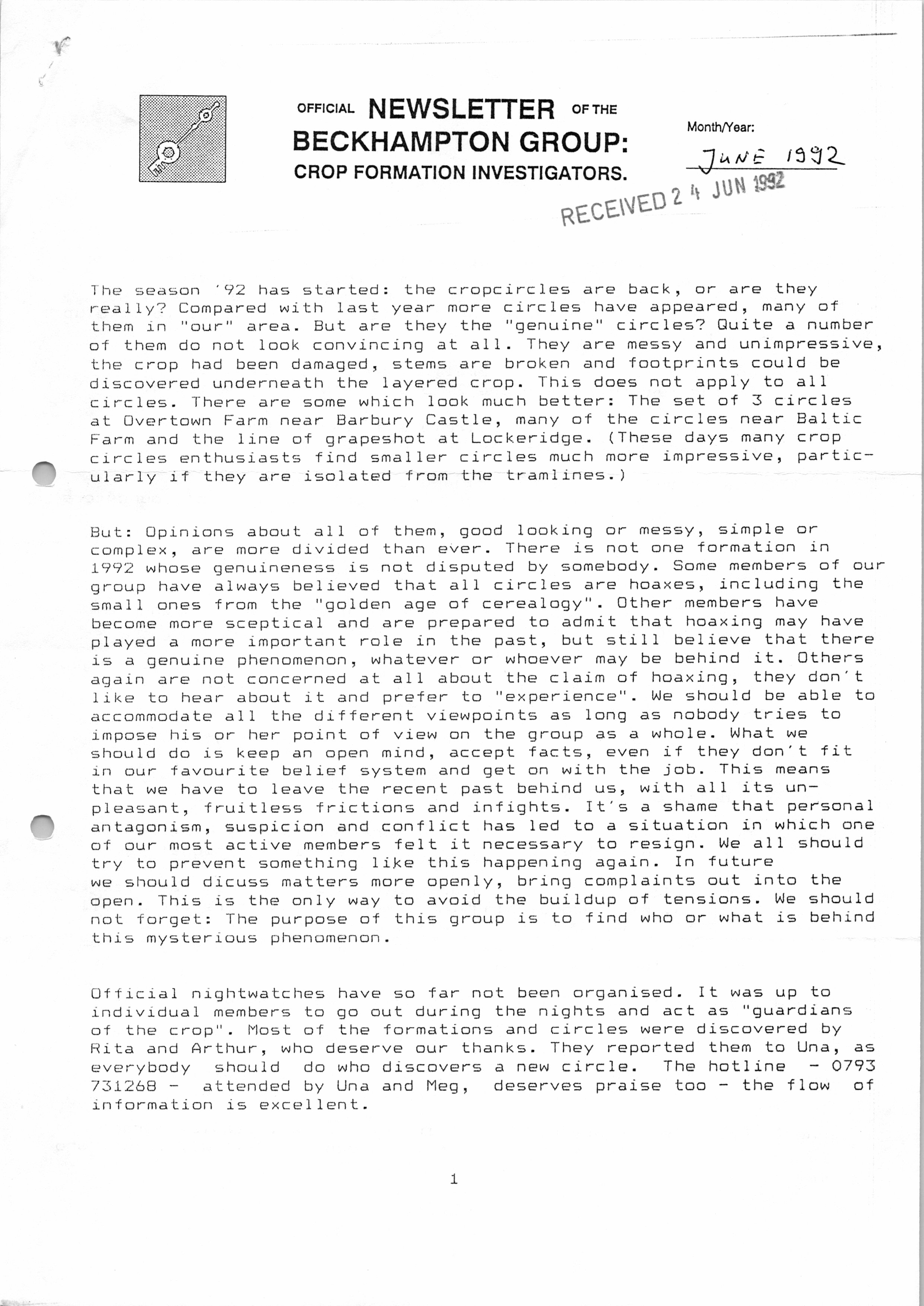 Newsletter June 1992