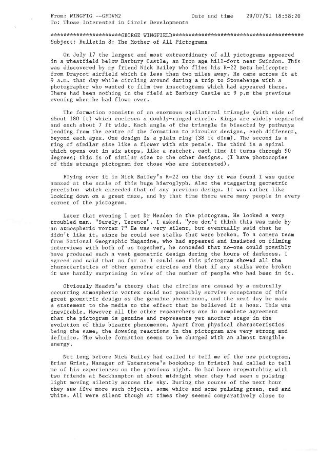 George Wingfield, who later became editor of The Cereologist, produced a bulletin between 1990 and 1991: