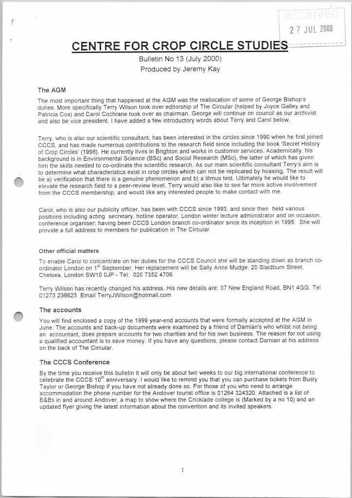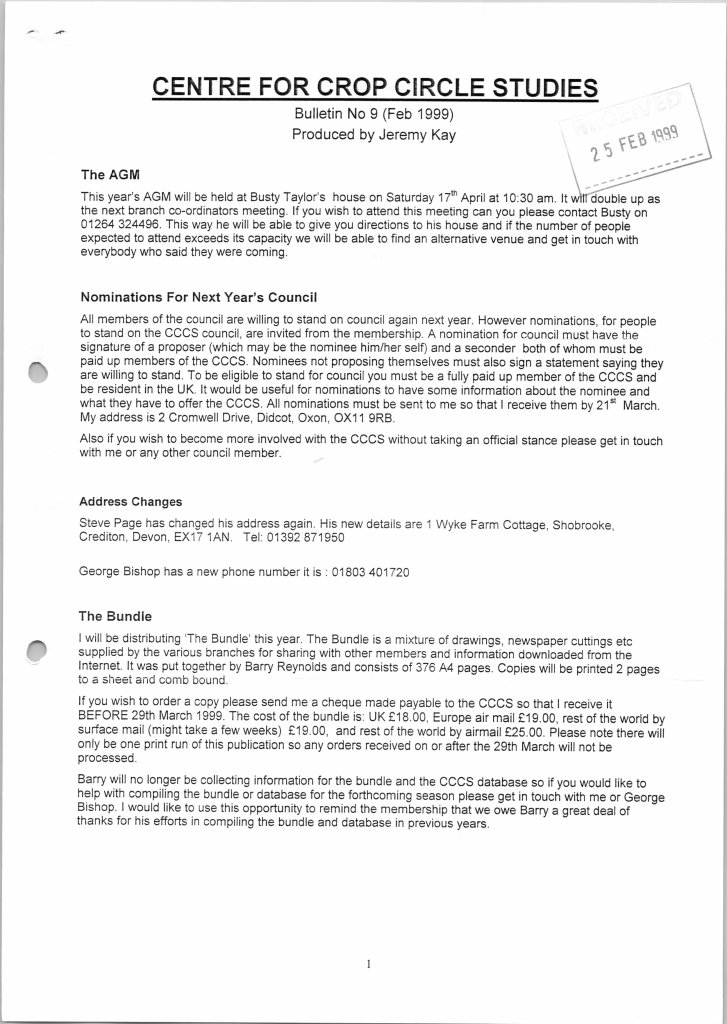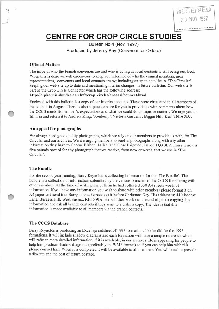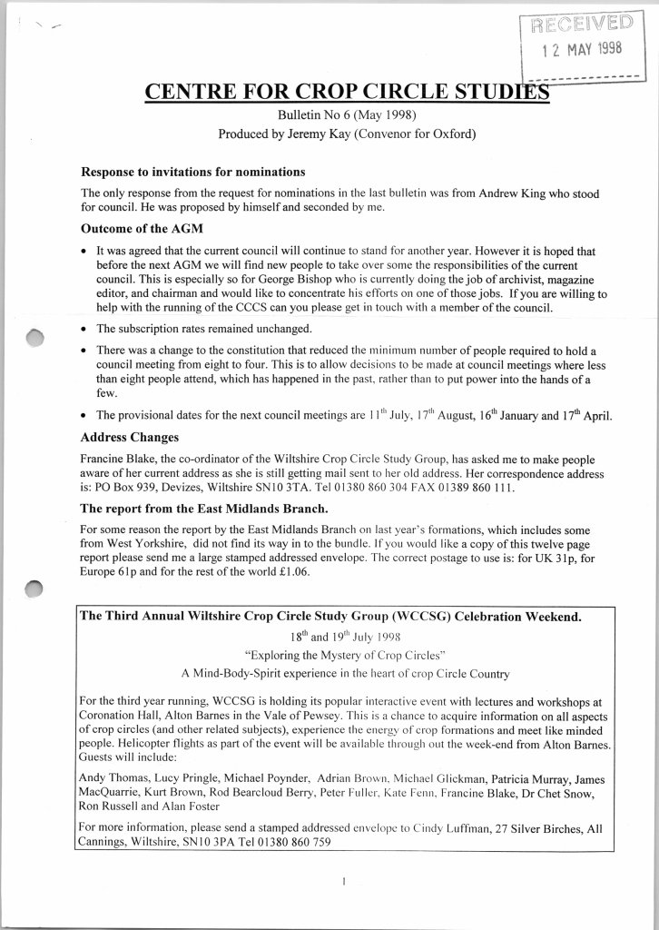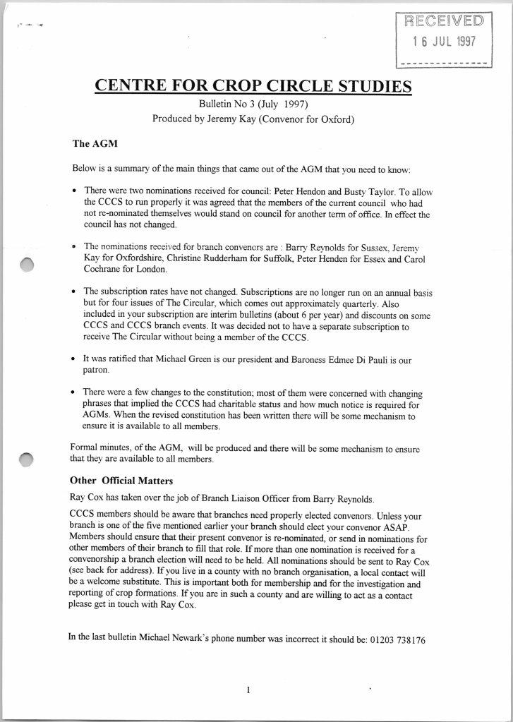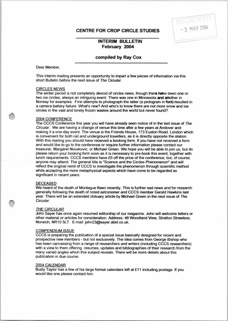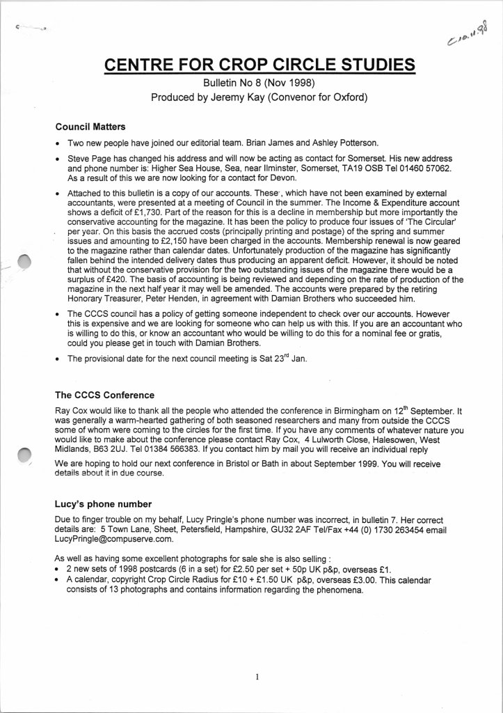These were produced sporadically, between issues of The Circular, to keep members up-to-date with various happenings. Seventeen issues were compiled by Jeremy Kay (Branch Convenor for Oxford) between 1997 and 2003 with the last one, issue 18, going out in February 2003 compiled by Ray Cox: