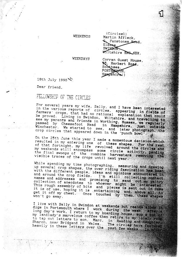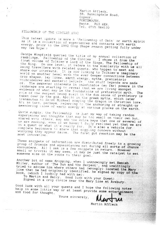 Martin Affleck’s journal of the crop circle phenomenon as he personally witnessed it.