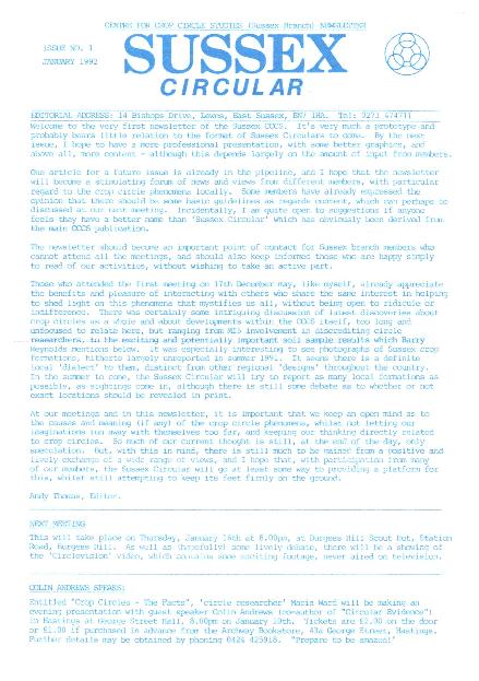 The Sussex Circular, or SC Magazine as it later became known, was initially the branch magazine of CCCS Sussex. Launched in January 1992 as “the world’s first MONTHLY crop circle publication” it quickly became the go-to crop circle magazine for anyone requiring all sides of a story and more besides. Transitioning into SC Magazine in issue 37 (January 1995), “The Monthly Magazine of Crop Circles and Beyond” ran for 94 issues before its final issue in Spring 2001. Never shy to back away from controversial commentaries or articles it was, and still remains, the best crop circle magazine the world has ever seen!