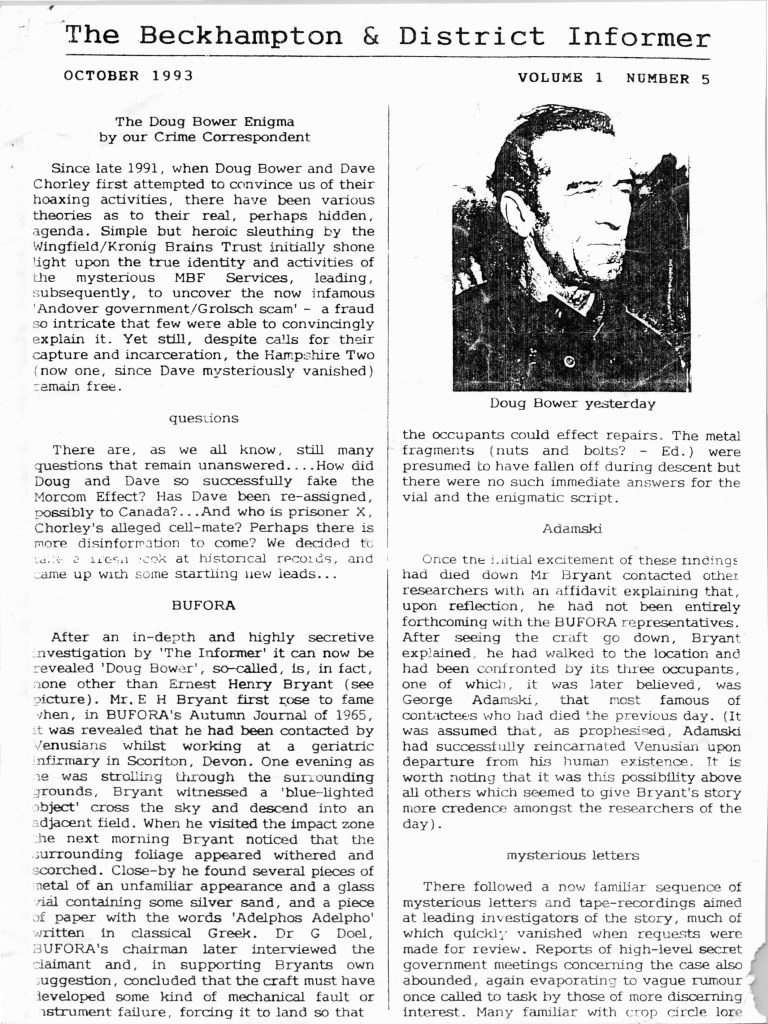 The Beckhampton & District Informer as it was initially known, was produced for a short while by known hoaxers within the Wiltshire area: