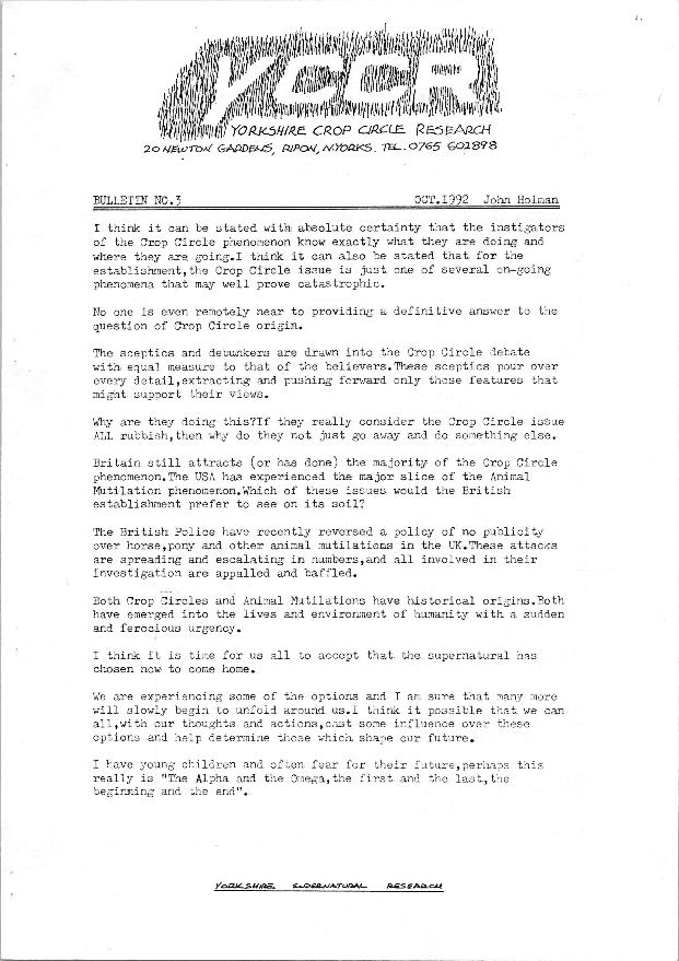 The journal of the Yorkshire crop circle group was produced by John Holman: