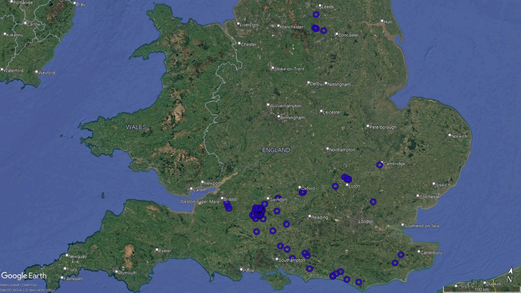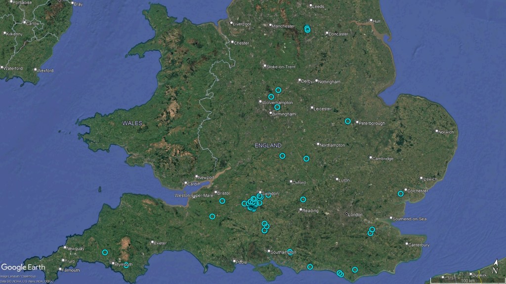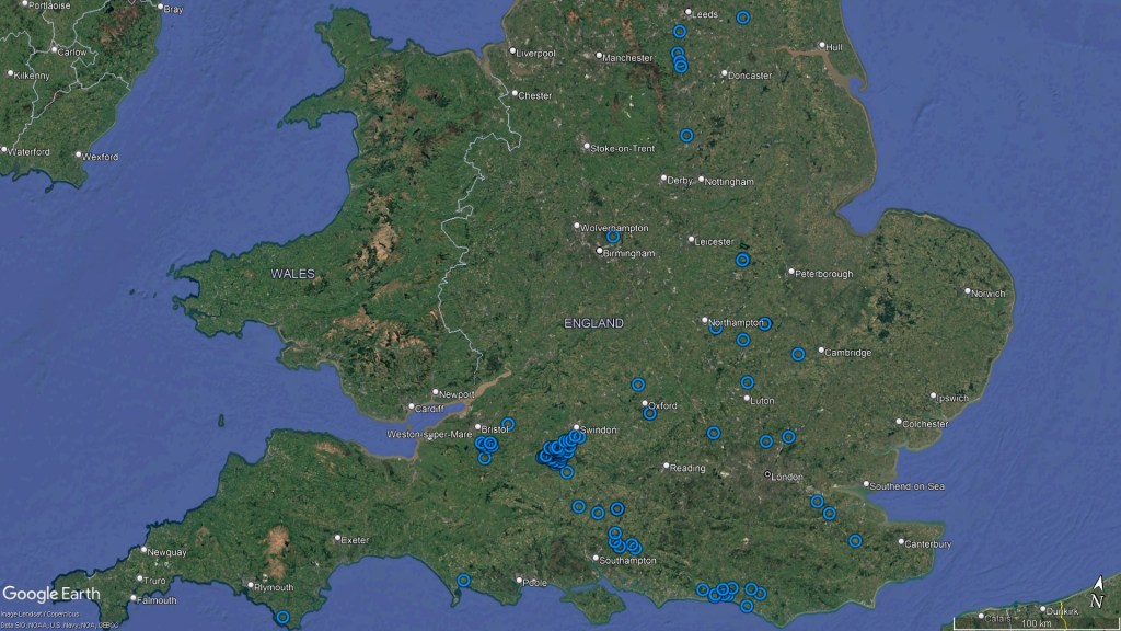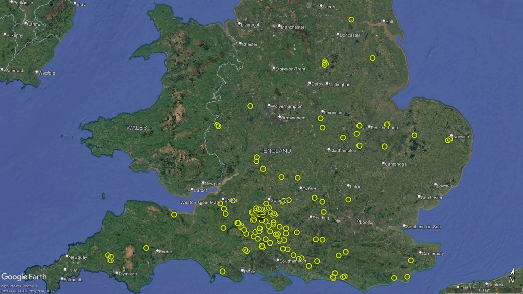 Here are a few distribution maps to show how the location within England has changed over the years…