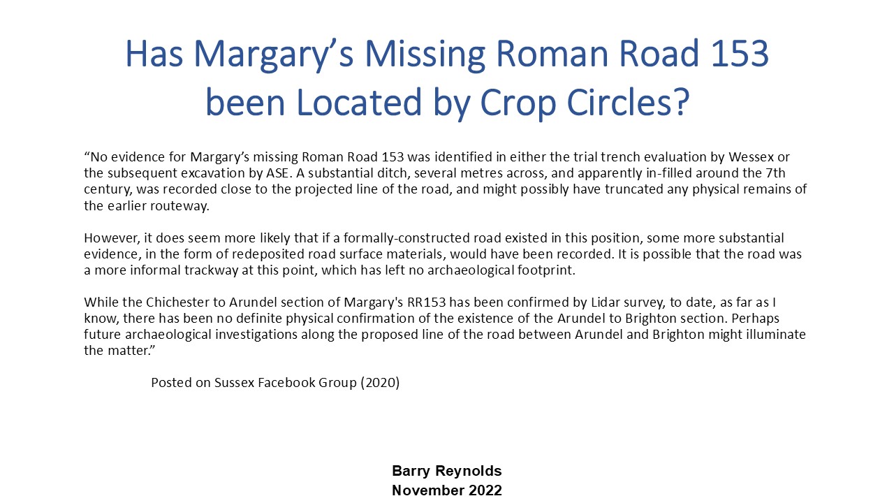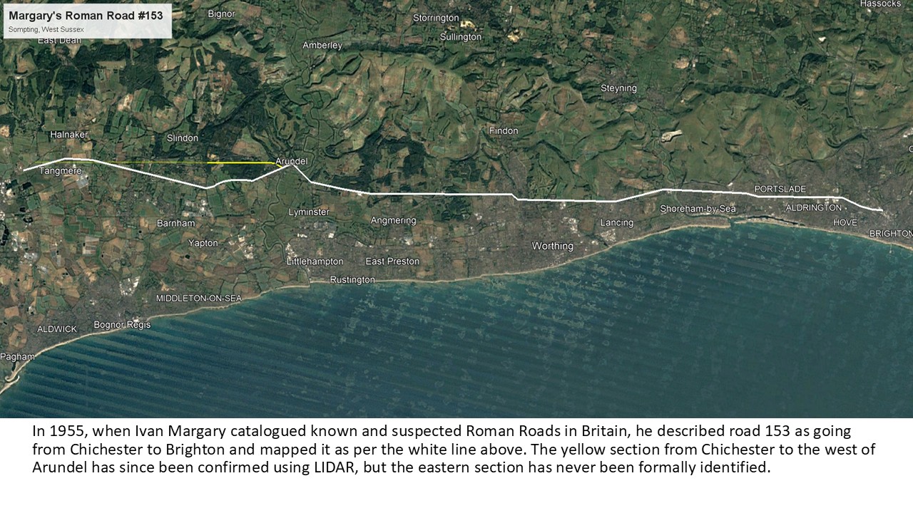 In 1955, when Ivan Margary catalogued known and suspected Roman Roads in Britain, he described road 153 as going from Chichester to Brighton. Whilst the section from Chichester to the west of Arundel has since been confirmed using LIDAR, the eastern section has never been formally identified. Or has it?