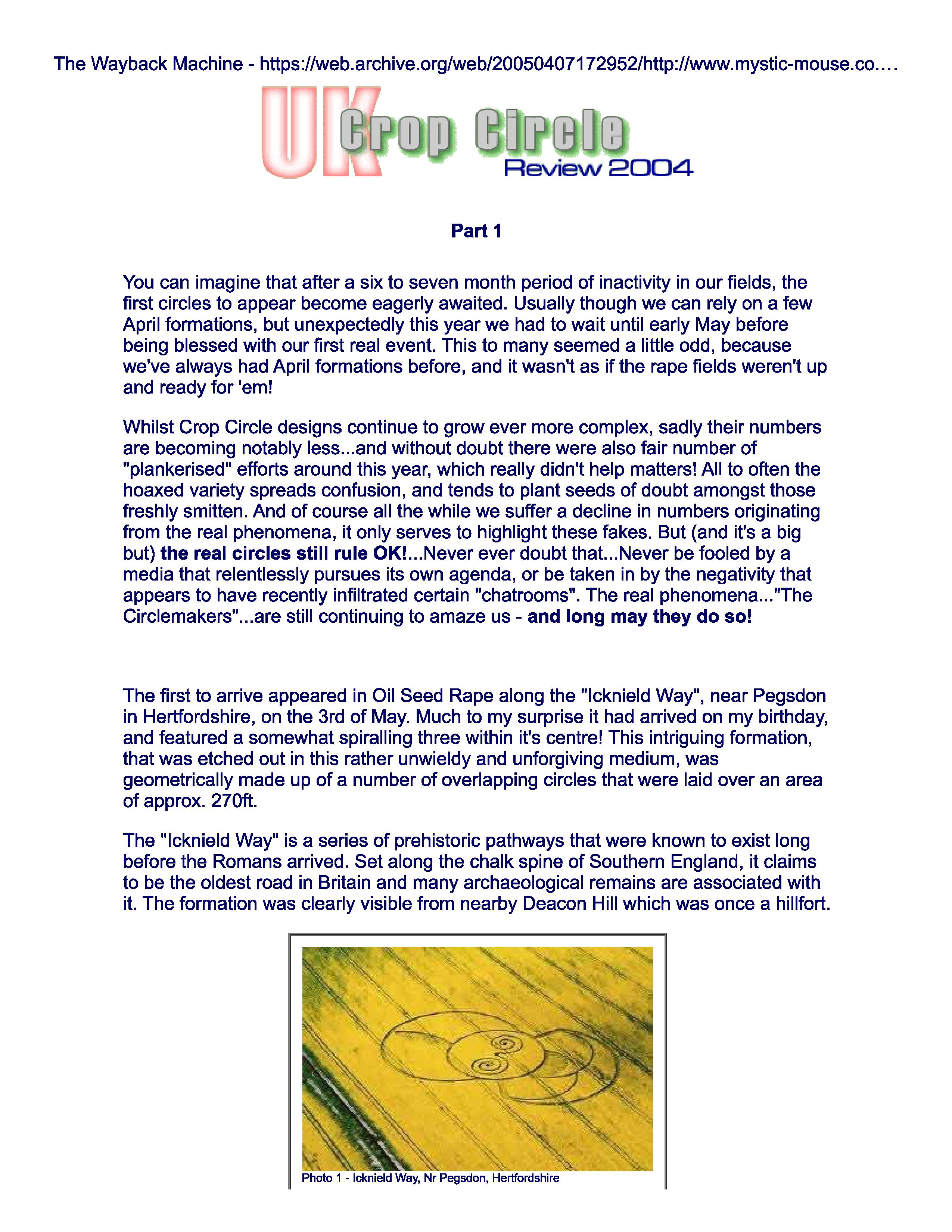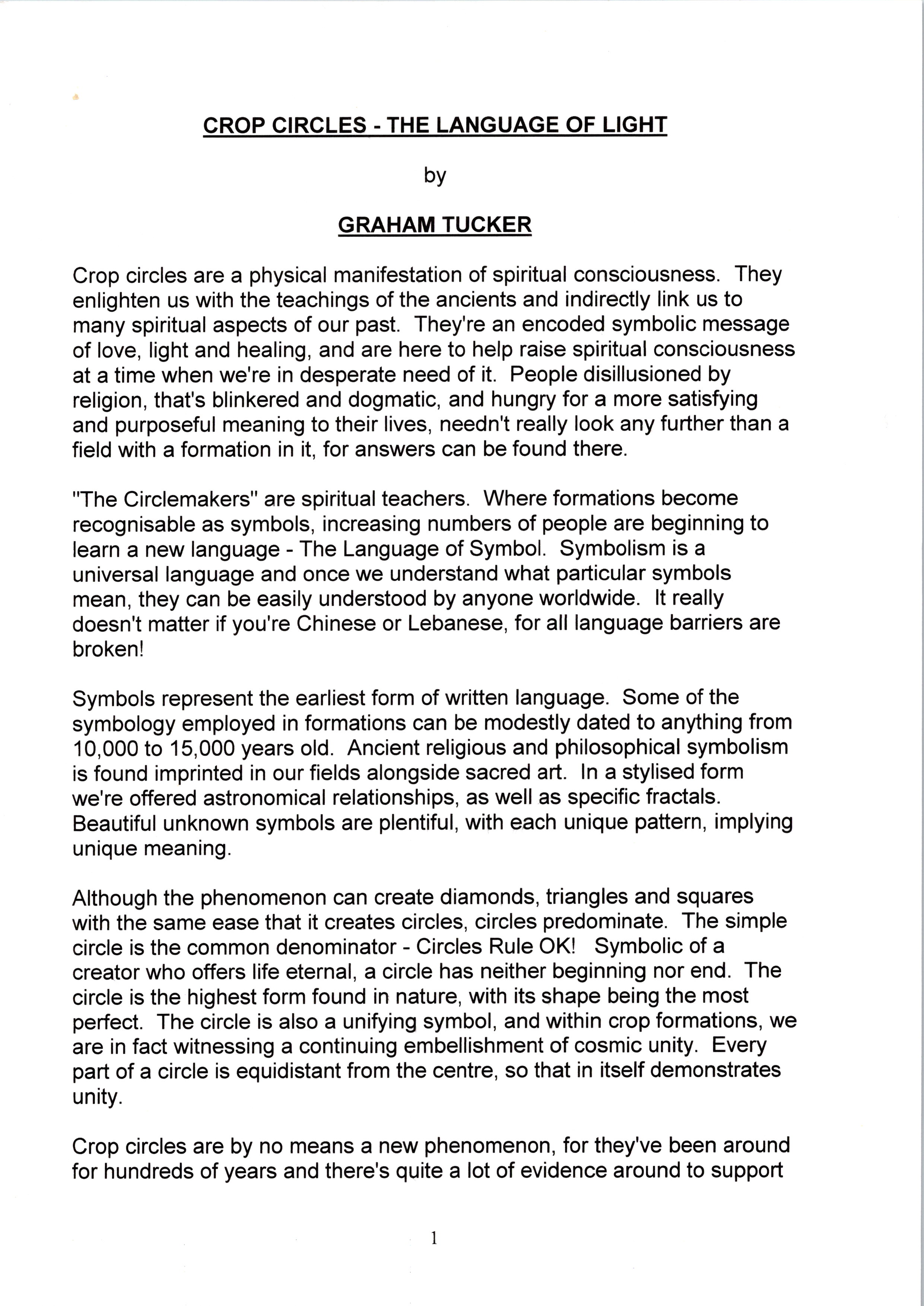 They produced the Medway Crop Circular, combining serious research with a good dose of satire, and Graham became a prolific writer of crop circle articles covering topics such as their group’s meditation experiences, 11:11 and Egyptian connections as well as annual reviews.